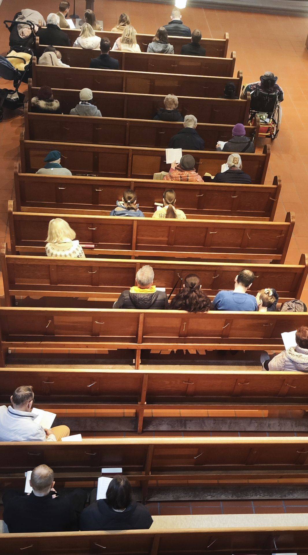 Rund 60 Sängerinnen und Sänger proben für das Mitsingoratorium „Inmitten von Leben“